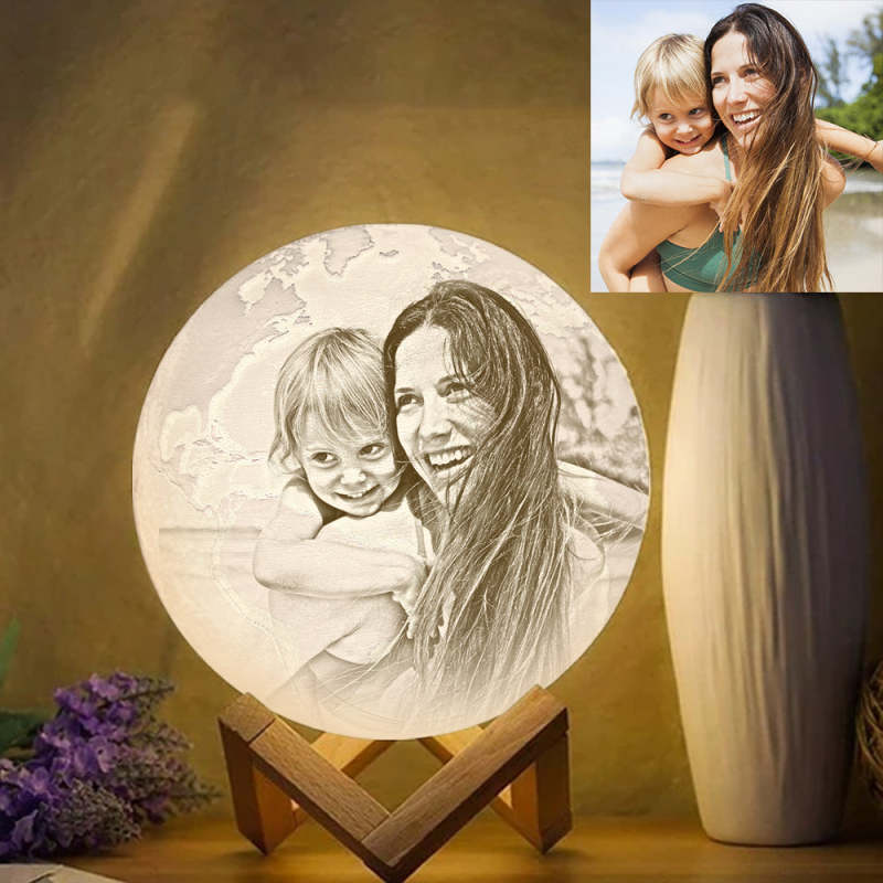 Vente de Fête des Pères 3D Créative et Lampe de Lune Personnalisé Gravée avec Photo de Mère et Fille