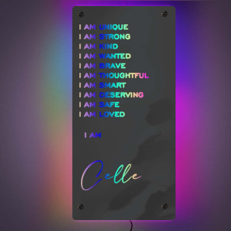 Miroir d'affirmations personnalisées - Je suis un miroir lumineux lampe de chambre colorée cadeau pour petite amie