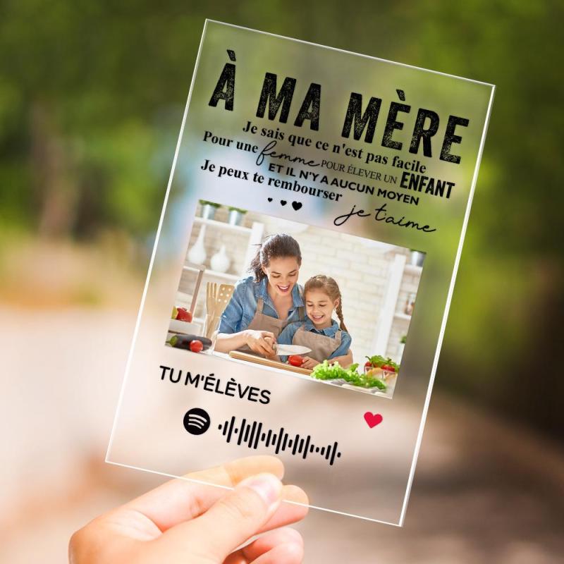 Cadre personnalisé Spotify Night Light LED avec photo gravée texte Night Light cadeau d'anniversaire pour maman