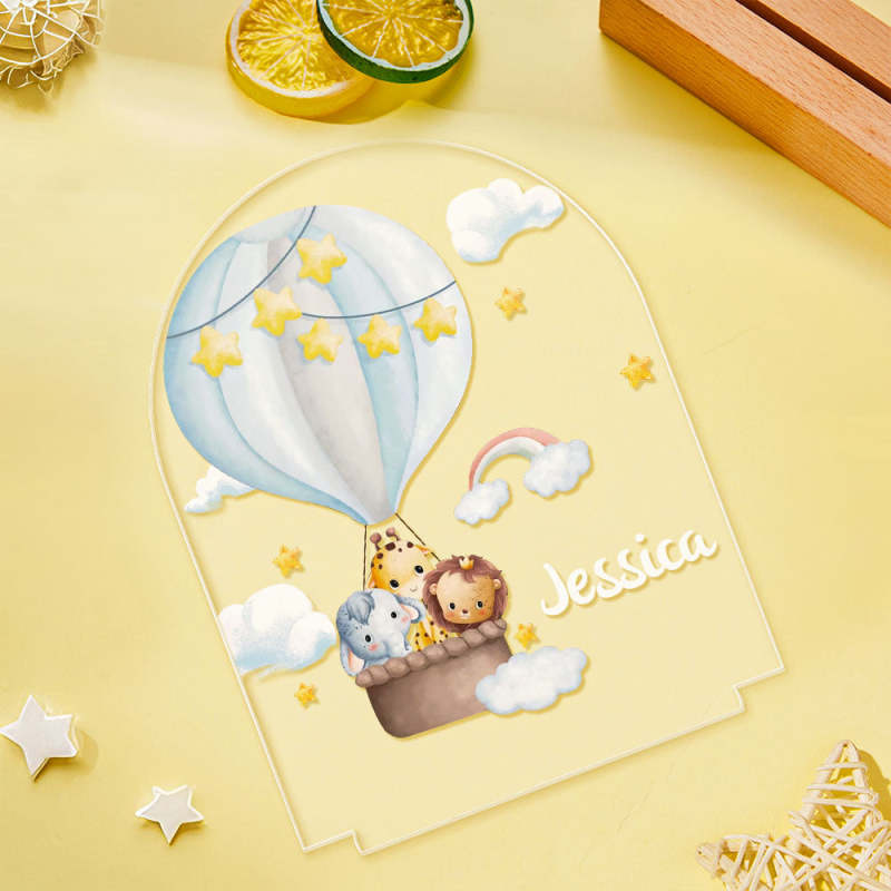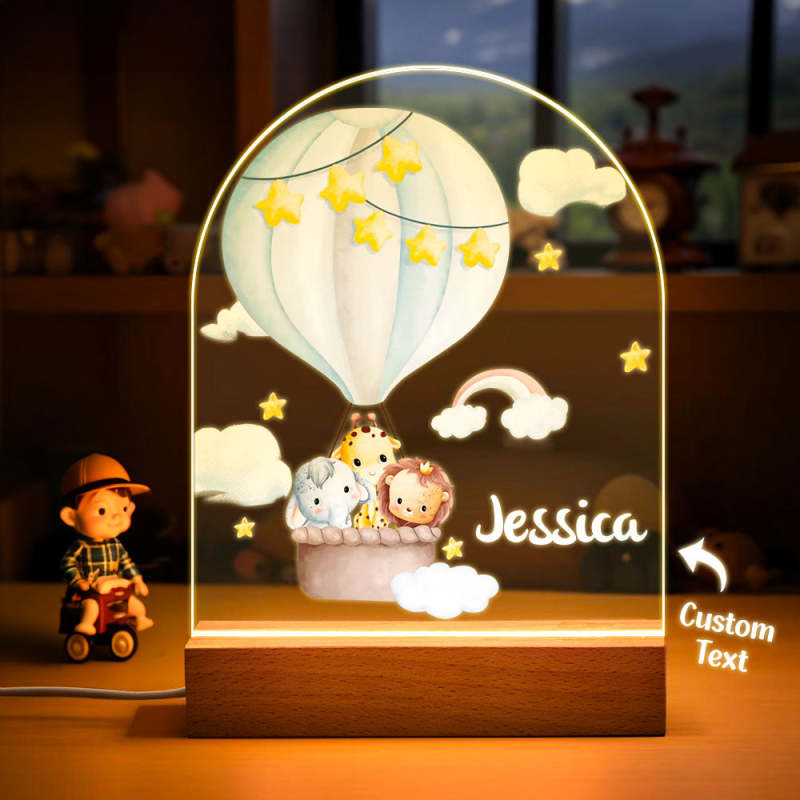 Animaux Personnalisés En Montgolfière, Nom, Lumière Personnalisée, Étoile Et Nuage, Veilleuse, Cadeau Pour Enfants