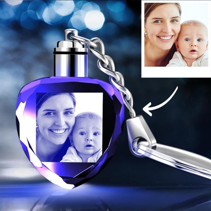 Porte-clés Photo Personnalisée en Cristal en Forme de Cœur Argent