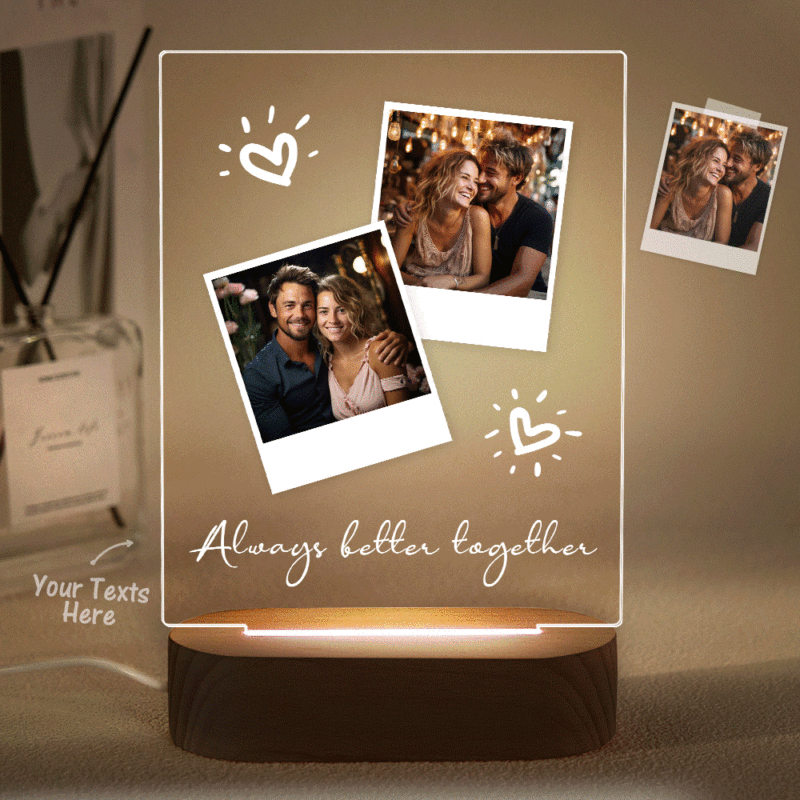 Cadeau De Couple Gravé Personnalisé Photo Personnalisée Polaroid Plaque Veilleuse Led