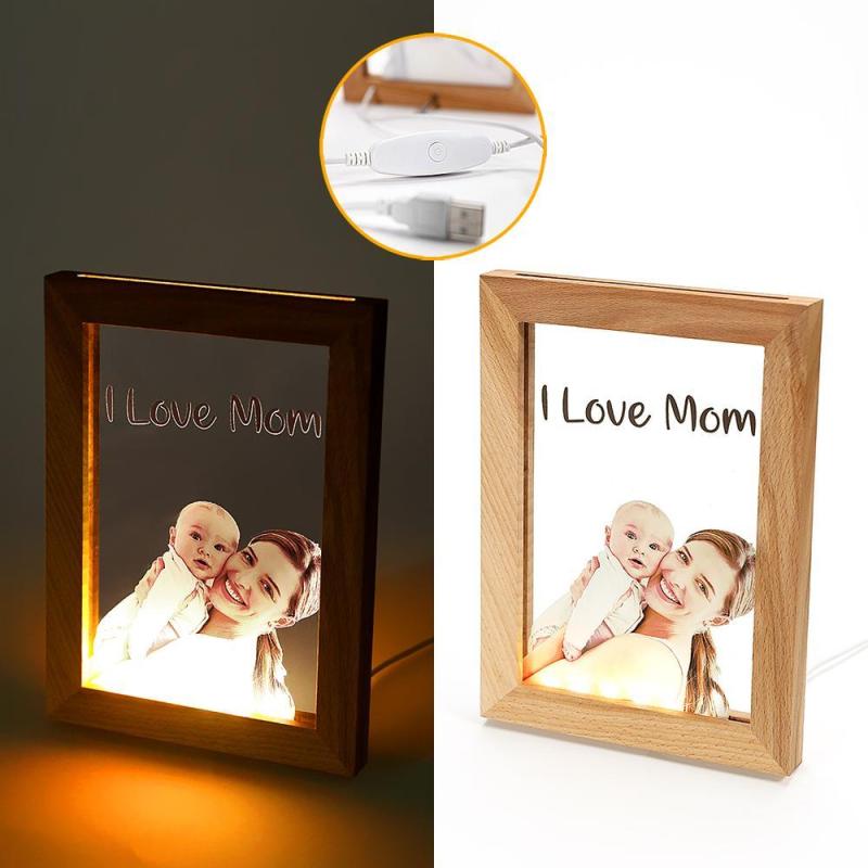Cadre de Photo Personnalisé Lampe de Nuit LED Gravée pour Mère et Bébé