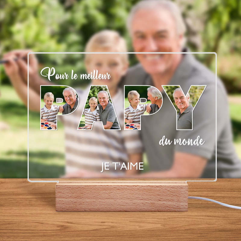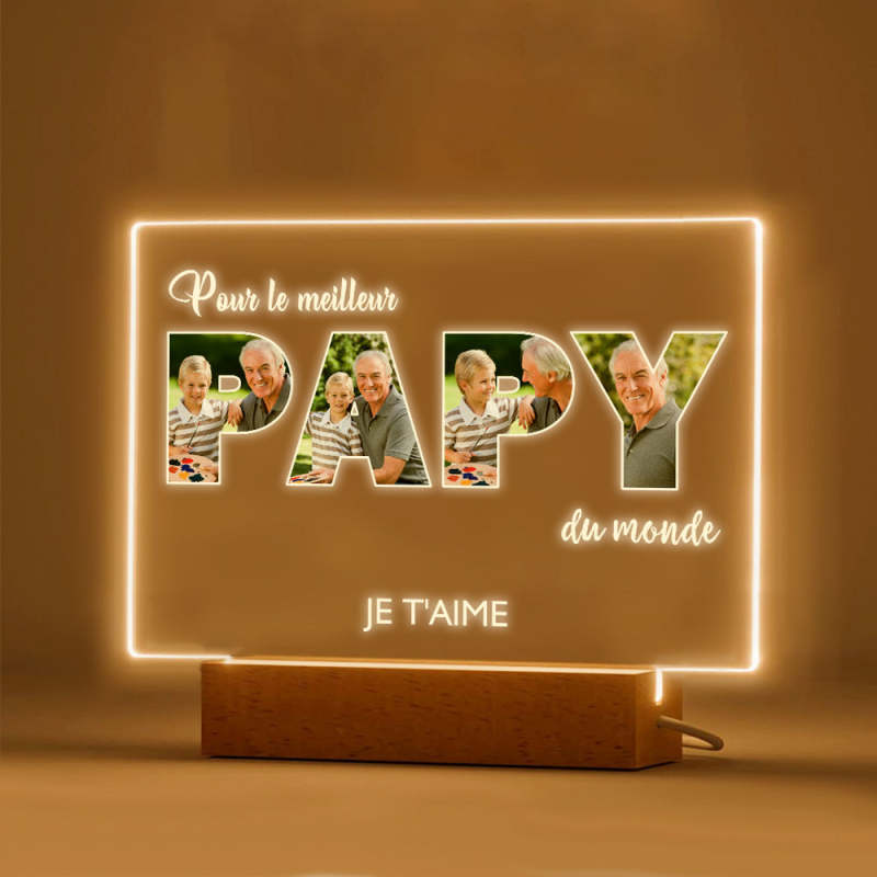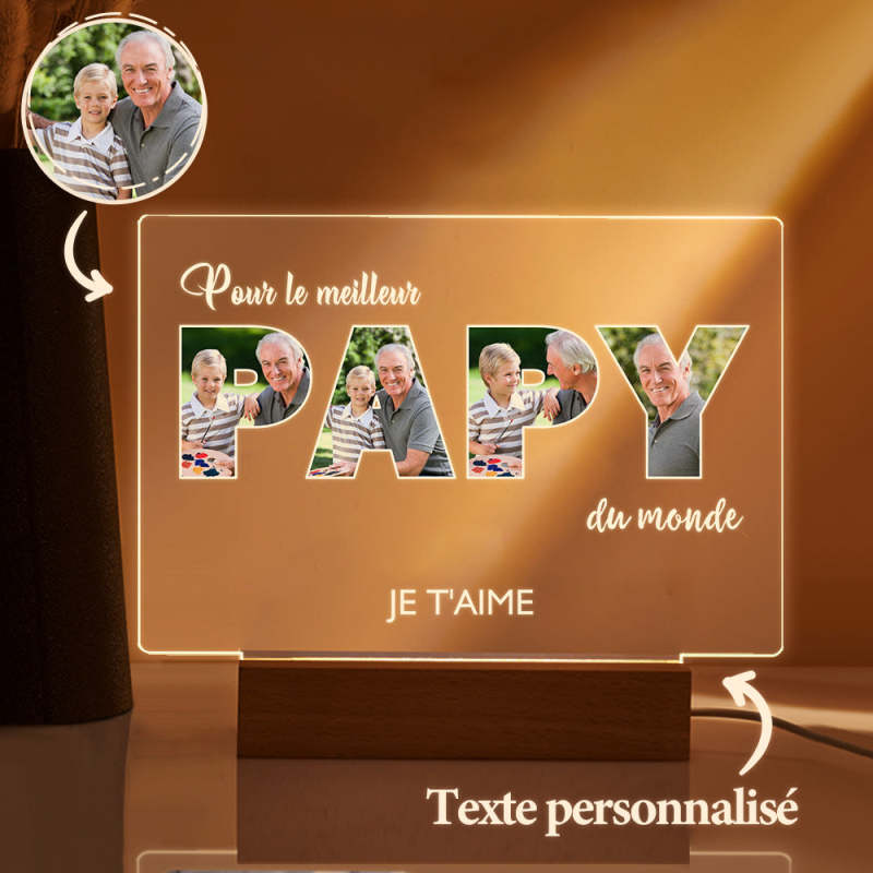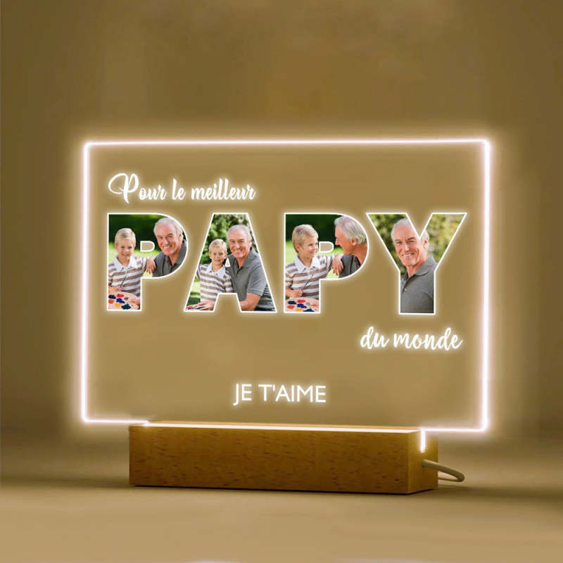 Veilleuse De Nuit Personnalisée Pour La Fête Des Pères Cadeaux De Lampe Acrylique Photo Personnalisés Pour Grand-père