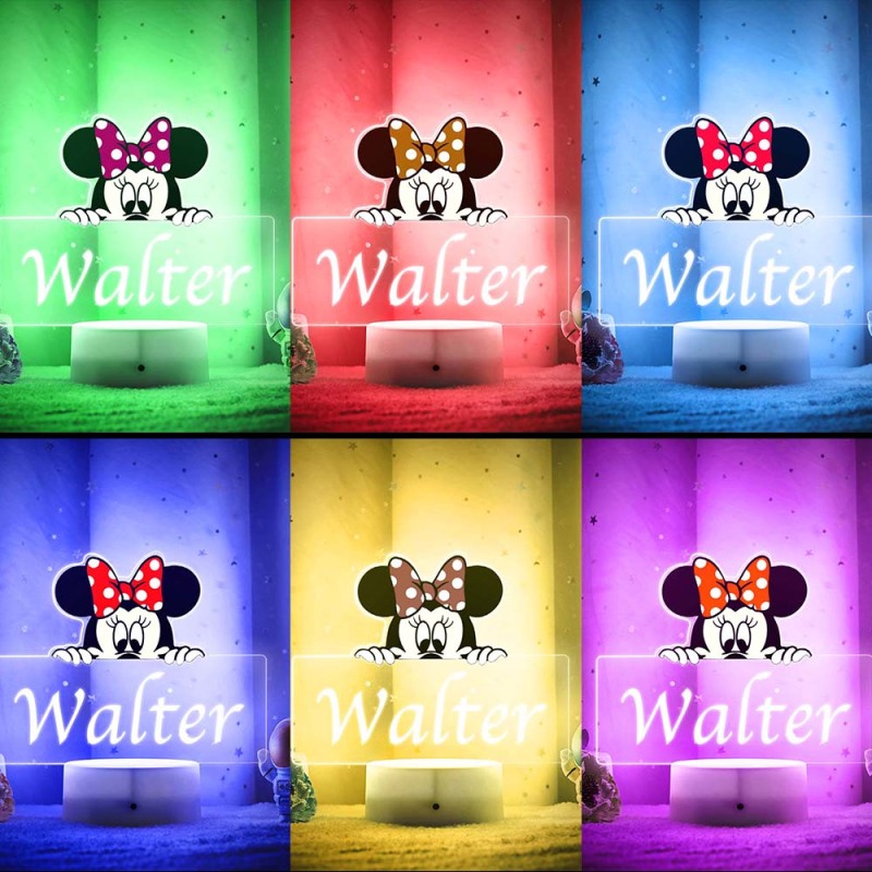 Lampe De Table De Table Lumineuse De Nuit Personnalisée Minnie Mouse Princess Seven Colors Pour Bébé Fille