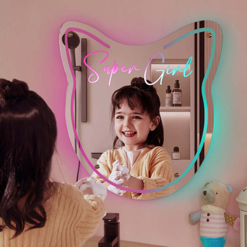 Lumière De Miroir Personnalisée Avec Nom De Chat, Lumières Colorées, Cadeau Pour La Maison