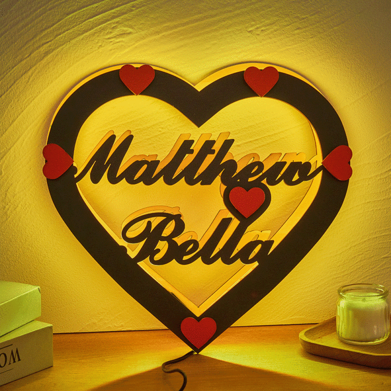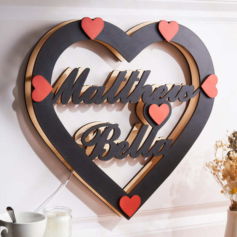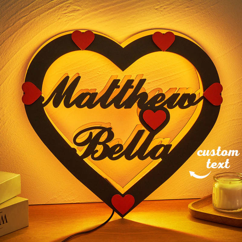 Nom Personnalisé Coeur Rouge Veilleuse Romantique Tenture Murale Lumière Led Cadeaux Pour Les Couples