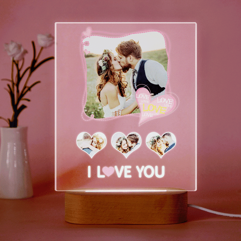 Lampe Acrylique Photo Personnalisée Personnalisée Je T'aime Plaque Acrylique Cadre Photo Cadeaux D'anniversaire