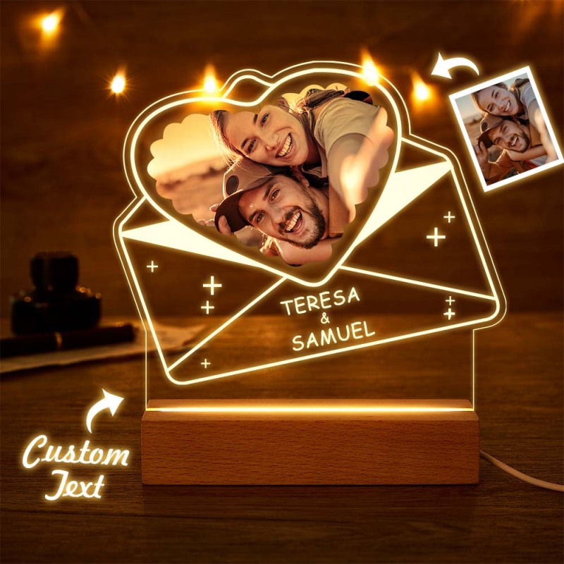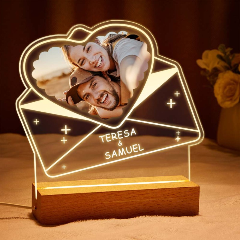 Veilleuse Photo Acrylique Personnalisée Avec Nom Lampe Personnalisée Couples Enveloppes En Forme De Coeur
