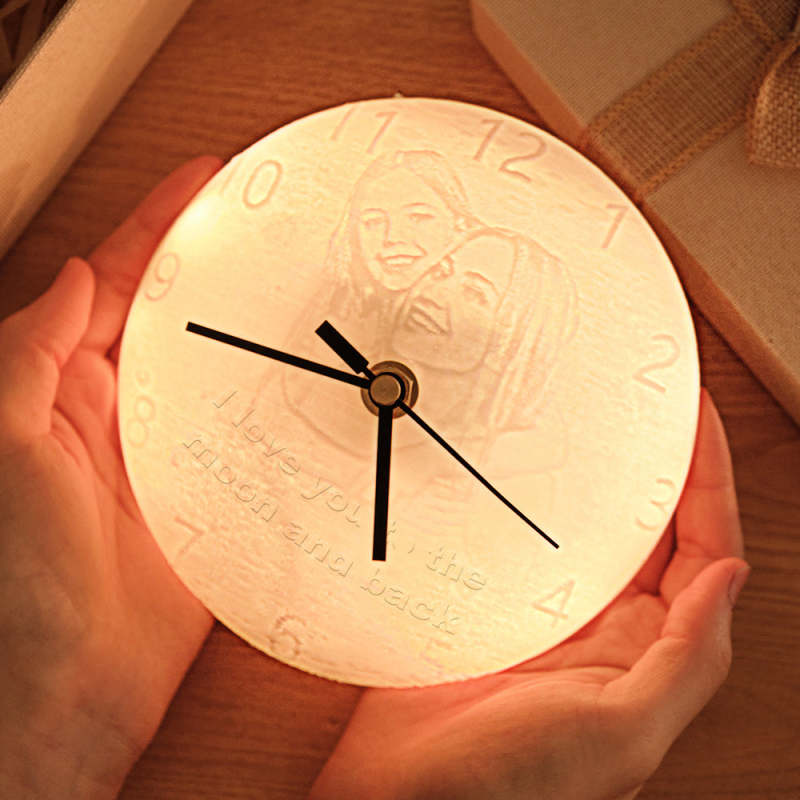 Photo Personnalisée Gravée Lune Veilleuse Horloge Créative Maison Couple Cadeaux