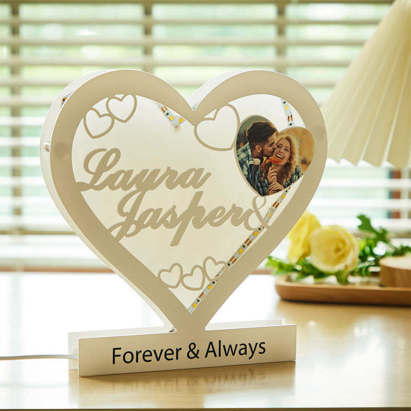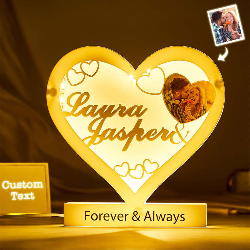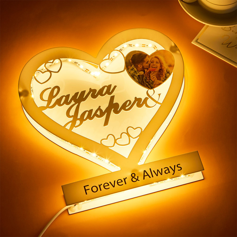 Cadeaux Romantiques Acryliques De Coeur De Lumière De Nuit Gravé Par Photo Faite Sur Commande Pour Le Couple