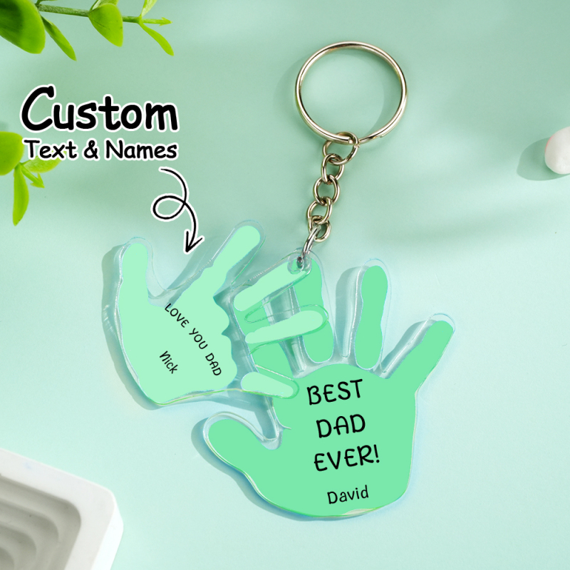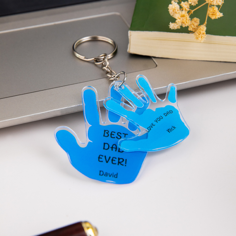 Porte-clés Personnalisé Avec Nom Et Empreinte De Paume, Cadeau Pour La Fête Des Pères, Gravé Avec Un Amour Unique