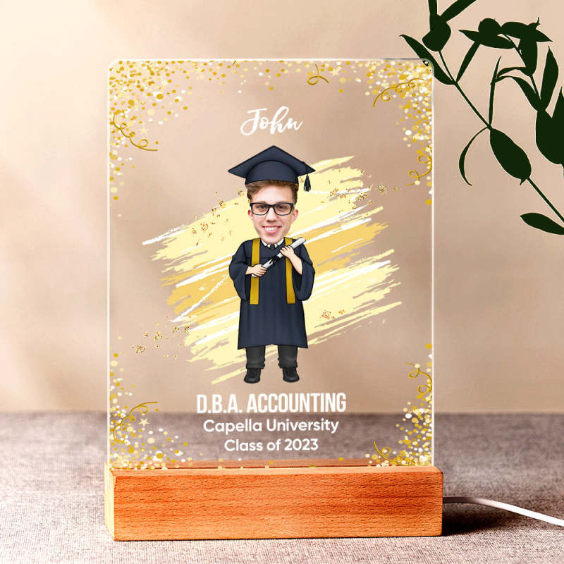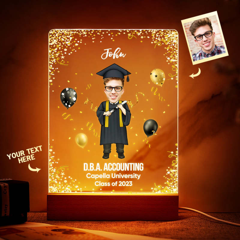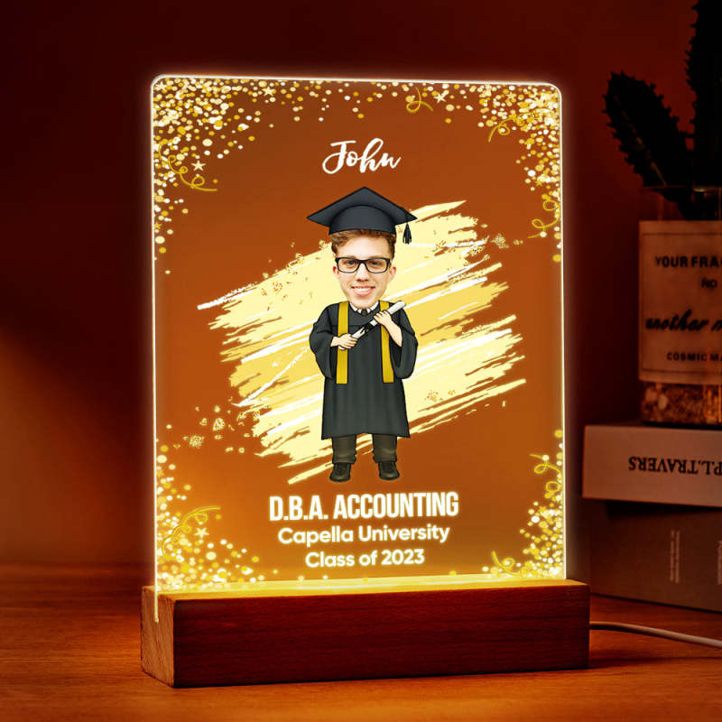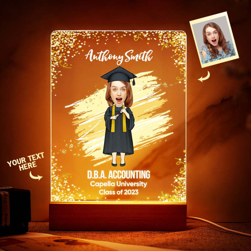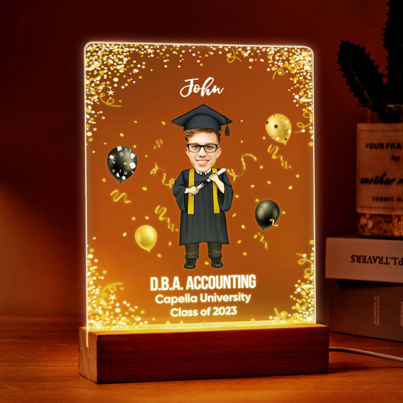 Graduation Ceremony Gift Custom Photo Graduation Appreciation Plaque Acrylique Lampe Personnalisée Votre Nom, Diplôme Et École