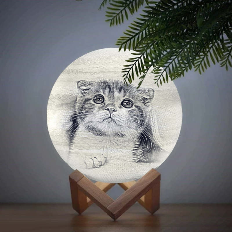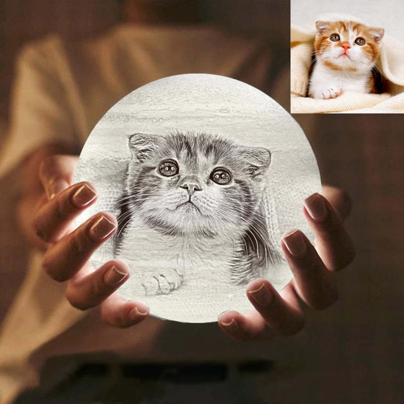 Lampe Terre Belle Photo d`Animal de Compagnie Gravée Impression 3D, Lampe Terre - Télécommande Seize Couleurs (10-20 cm) Blanche