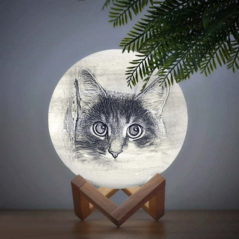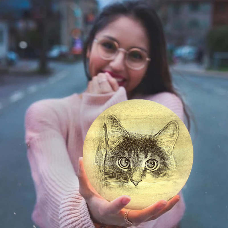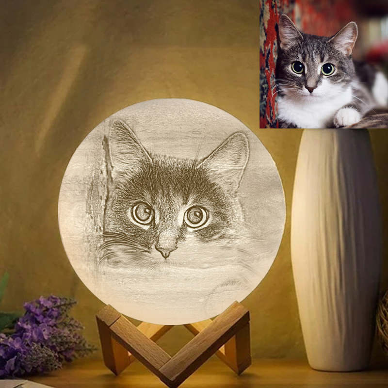 Lampe Terre Animaux de Compagnie Lune Magique Texte, Belle Lampe Photo Chat Gravé - Toucher Deux Couleurs (10-20cm)