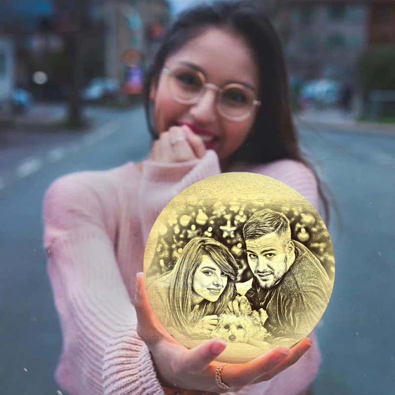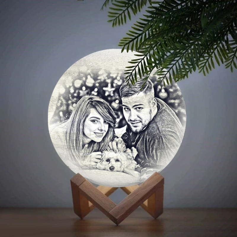 Lampe Terre Personnalisée Lune Magique avec Texte, Lampe Photo Gravée pour Amoureux - Toucher Deux Couleurs Blanche