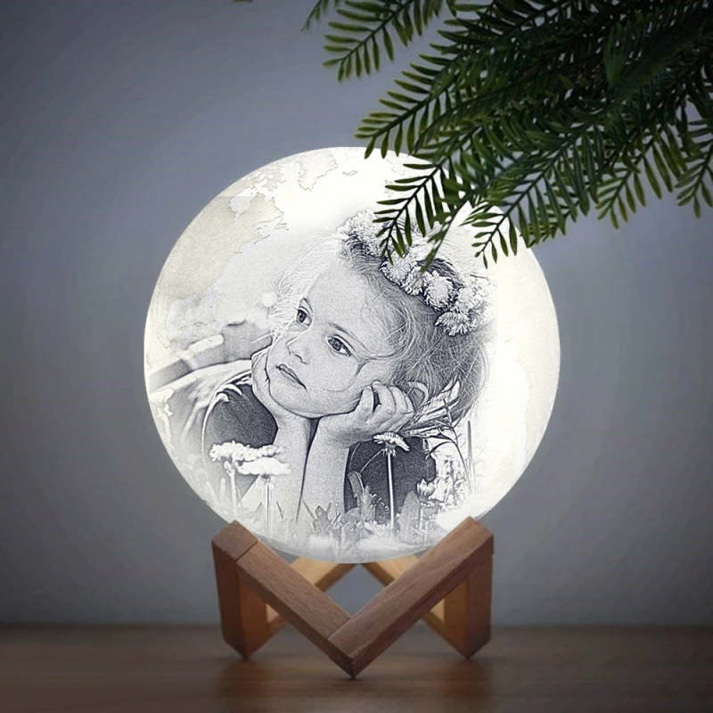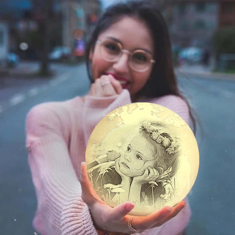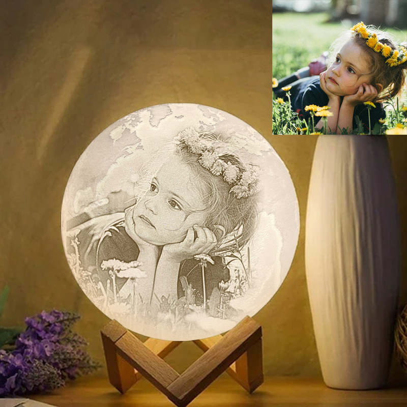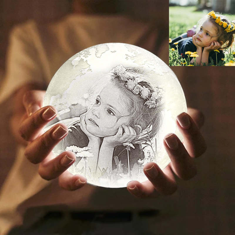 Lampe Terre Photo Impression 3D Créative Personnalisée, Lampe Gravée, Cadeau Bébé - Appuyer Trois Couleurs (10-20 cm)