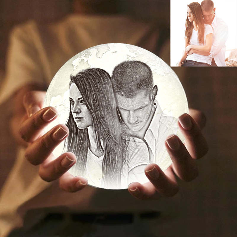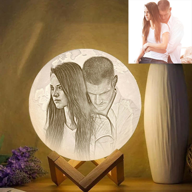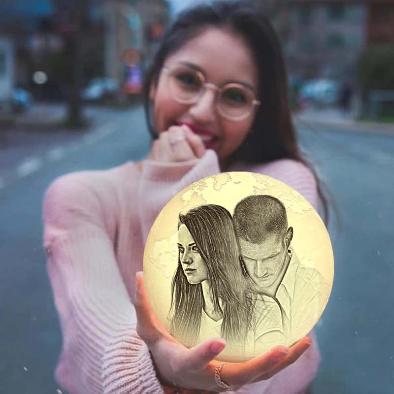 Lampe Terre Photo Créative Personnalisée Impression 3D, Lampe Gravée Cadeaux d'amour - Appuyer Trois Couleurs
