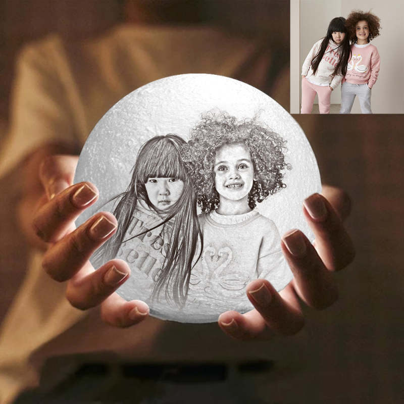 Lampe Lune Photo Créative Personnalisée Impression 3D, Lampe Gravée - Toucher Deux Couleurs