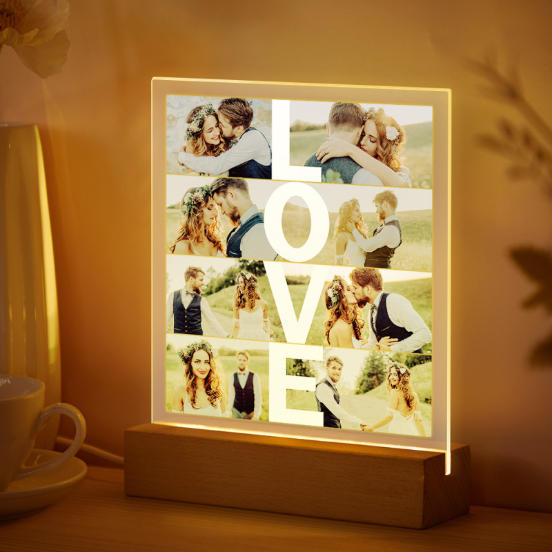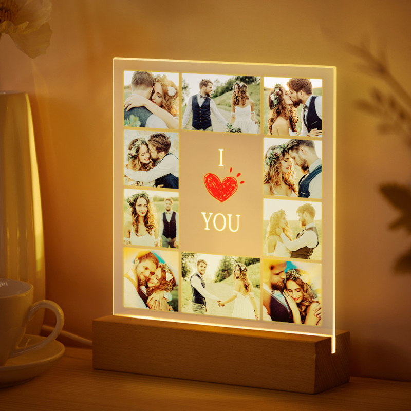 Veilleuse Led Personnalisée En Acrylique Avec Photo, Idéale Pour La Saint-valentin, Un Anniversaire De Mariage Ou Un Cadeau D'anniversaire.
