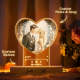 Lampe Acrylique En Forme De Cœur Avec Photo Personnalisée, Veilleuse Personnalisée Avec Base En Bois Gravé, Cadeau Pour Couple