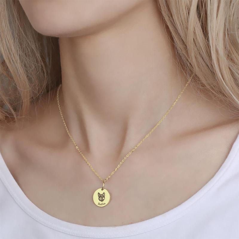 Collier Photo Portrait Avec Gravure De Forme Ronde, Bijou Portrait Personnalisé Plaqué Or 14 Carats